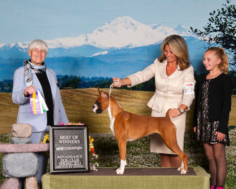 Am.Can.Ch.Toprank N Mephisto Lulu Lemon : Lulu was bred by Shelly Dueck of Toprank Boxers and came to live with us at eight weeks of age when Devlin left for the USA for her three year campaign. Lulu fiished both of her championship titles before the age of 18 months. Lulu is the Dam of Lala, ABC Best of Winners 2018.